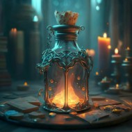 botella mágica imagen 3d fantasía ilustración misteriosa encantada brillo creatividad genio sorprendente obra de arte diseño elemento místico brillante fantástica magia escena realismo maravilla espectacular detalles escenario alquimiaSimilar Fotos