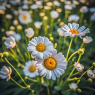 "Flores blancas con toques de amarillo sobre un fondo verde, una imagen que irradia frescura y vitalidad en la naturaleza."